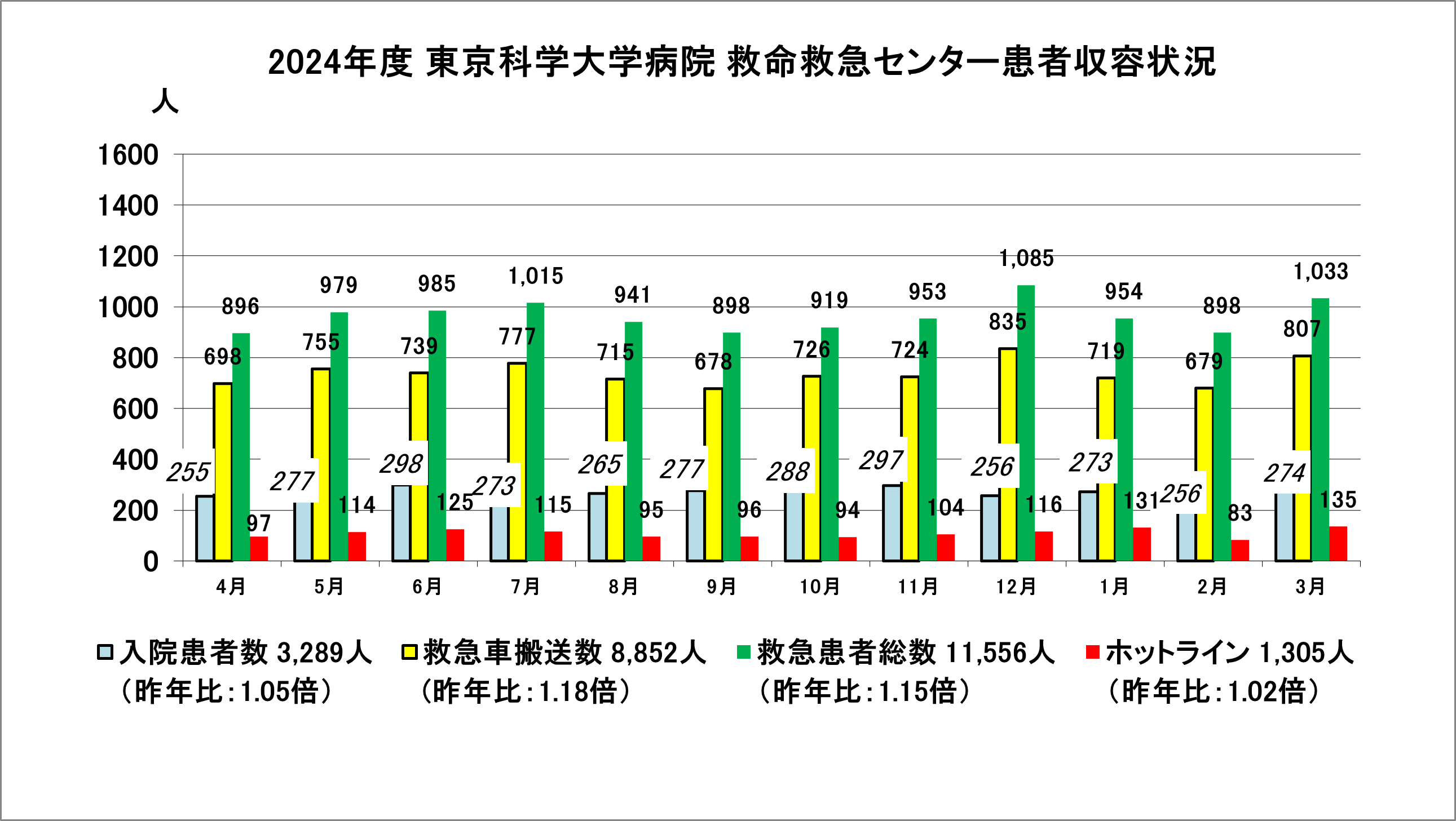今後も東京の中心に位置する救命救急センターとして、多様化・複雑化する救急医療の現状に立ち向かい、貢献していきたいと考えています。