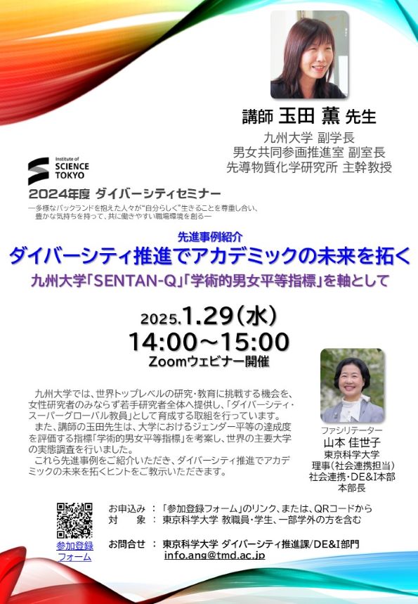 これら先進事例をご紹介いただき、ダイバーシティ推進でアカデミックの未来を拓くヒントをご教示いただきます。