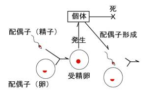 体細胞分裂は右の図で受精卵から個体が発生する過程と、個体を維持するために必要に応じて細胞の数を増やす過程で見られる。一方、減数分裂は、動物では、配偶子(精子と卵)の形成されるときに見られる。卵と精子は染色体の数が半分になるので半数体(haploid、nと表記)と言う。卵と精子が受精すると、両方の核が融合して受精卵は再び染色体がペアになった二倍体(diploid、2nと表記)となる。