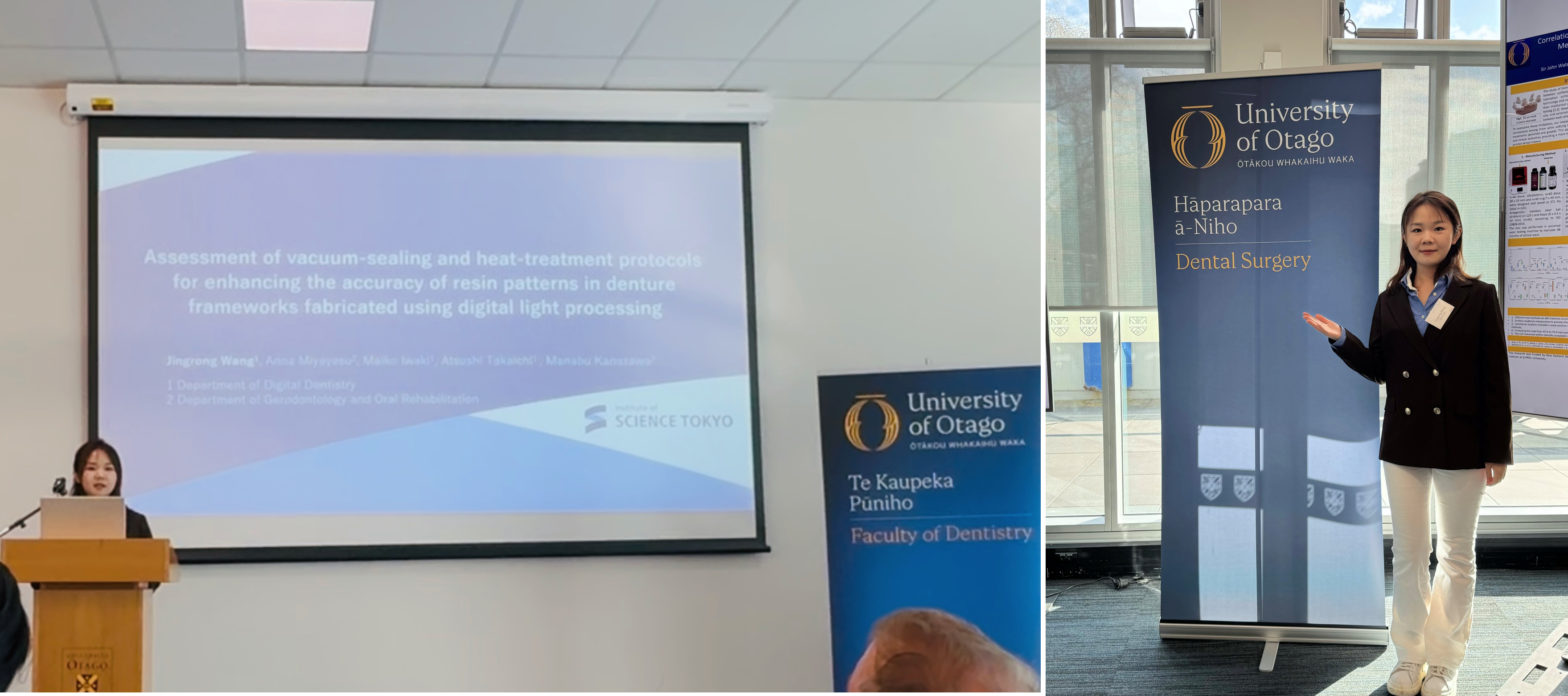 大学院生のJingrong Wangがオタゴ大学で開催されました2025 Pan-PacificLeading DentalSchools SymposiumProgrammeで発表を行いました。 Pan-PacificLeading DentalSchools Symposium ProgrammeはScience Tokyo、メルボルン大学・北京大学・ソウル国立大学・オタゴ大学の 5 大学での学術・学生交流促進を目的として開催されました。