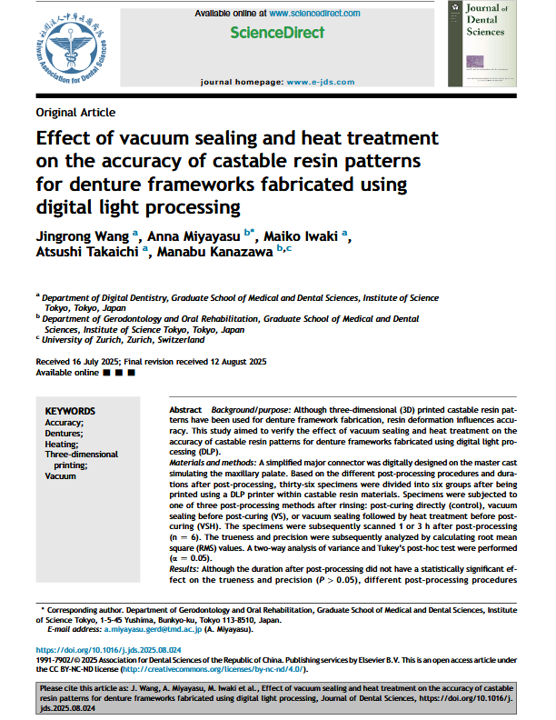 Jingrong Wangの論文がJournal of Dental Scienceに掲載されました