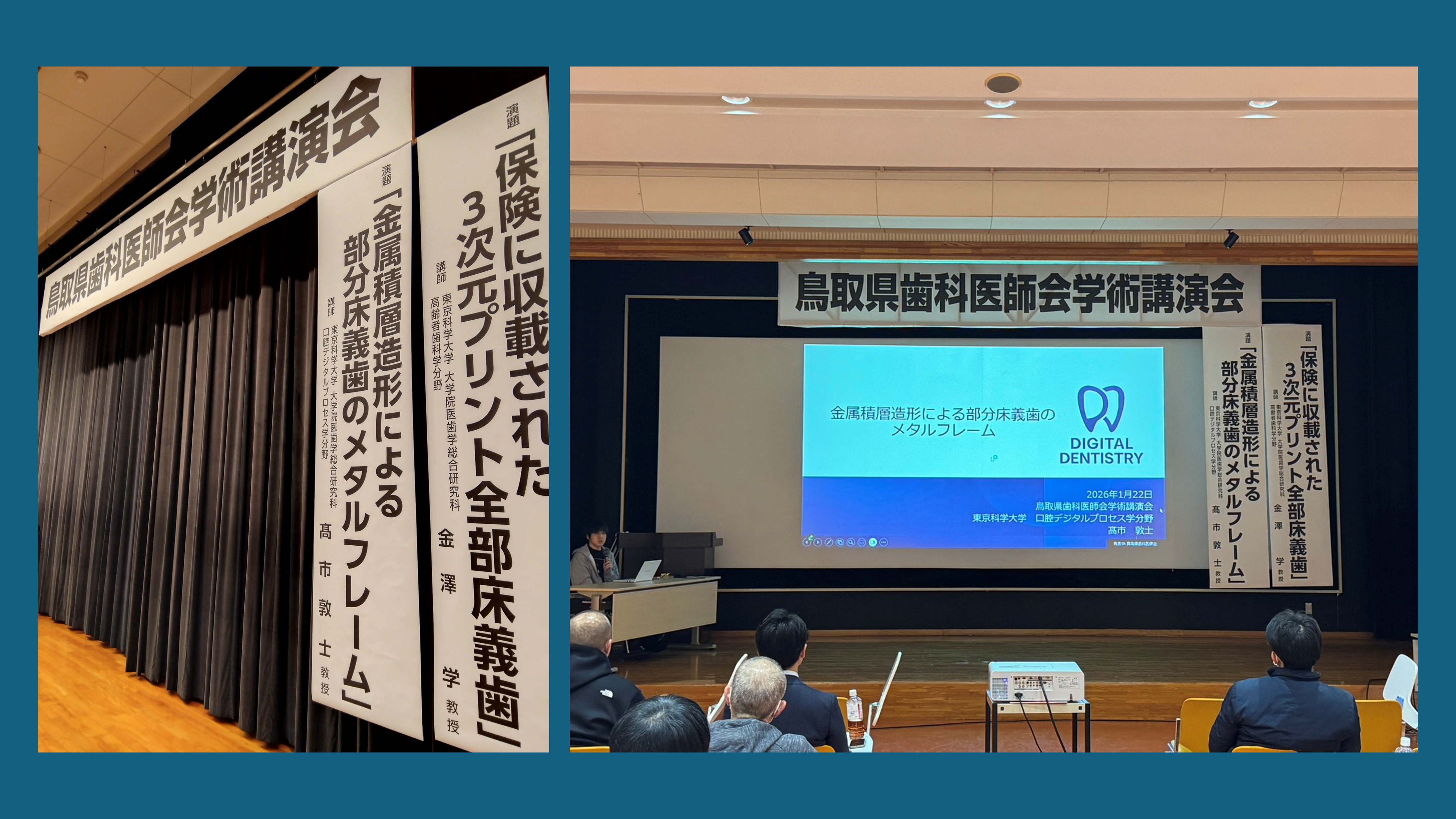 鳥取県歯科医師会にて、金属積層造形技術を活用した部分床義歯メタルフレームワークについて講演させていただきました。 雪が振る中での開催となりましたが、多くの先生方、歯科技工士の方に参加いただきました。