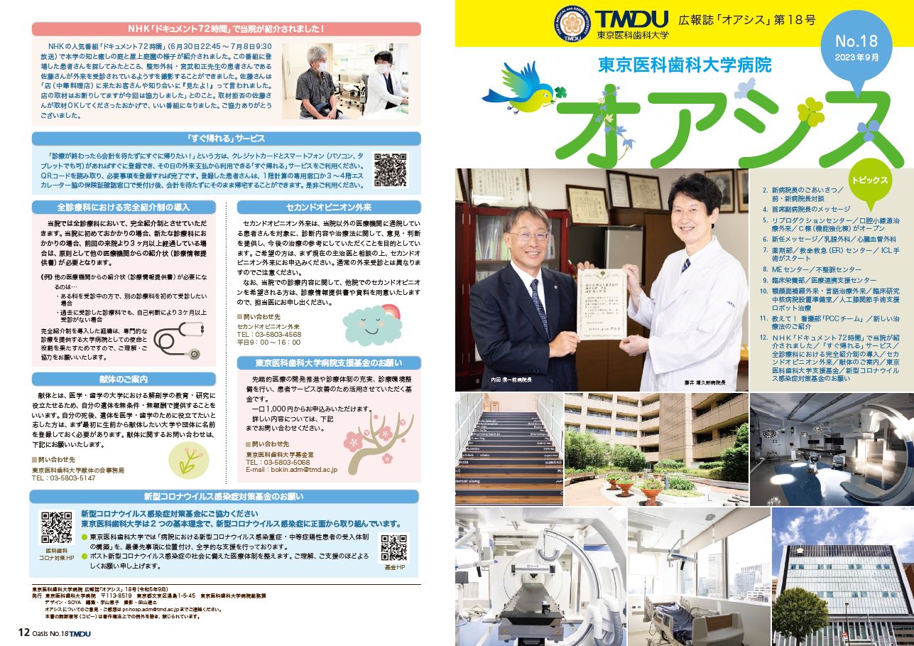 東京医科歯科大学病院の広報誌「オアシス」18号が完成しました。