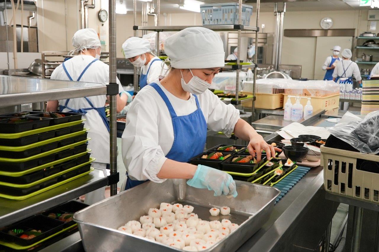 調理や配膳に携わるスタッフは、患者さんの反応を直接目にすることはできません。それでも、忙しく手を動かしながら、それぞれが患者さんの笑顔を思い浮かべ、時間に間に合うよう心を込めて準備を進めました。