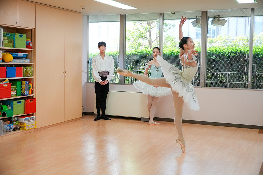 東京科学大学病院では、2026年2月5日(水)14時から小児科病棟において、 K-BALLET TOKYO所属 のバレエダンサーによるチャリティ企画「バレエとふれあうミニコンサート」を開催しました。 今回訪問してくださったのは、弟子丸智絵さん、長尾美音さん、清水良真さんです。
