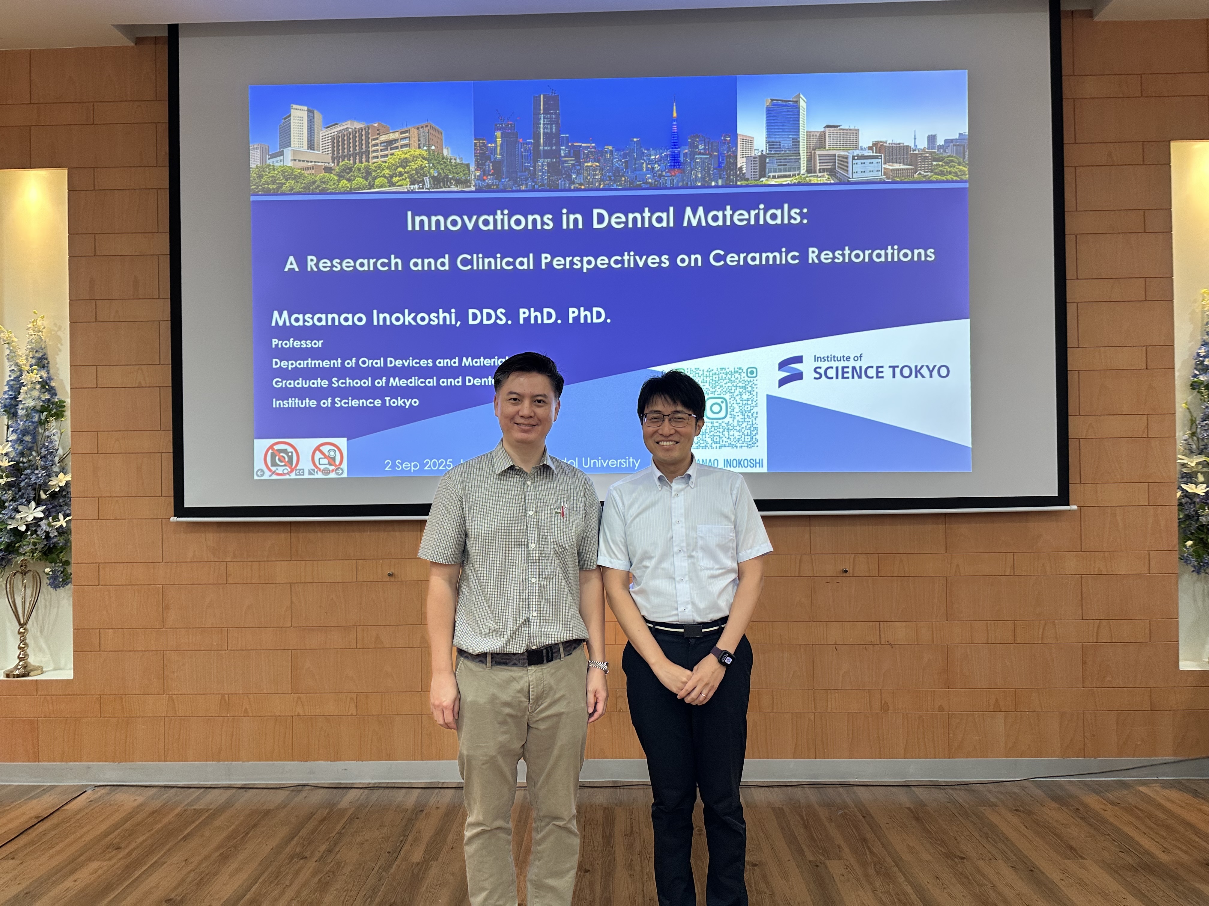 On September 2, 2025, Prof. Masanao Inokoshi gave a lecture at Mahidol University (Thailand). The title of the presentation was “Innovations in Dental Materials: A Research and Clinical Perspectives on Ceramic Restorations.”
