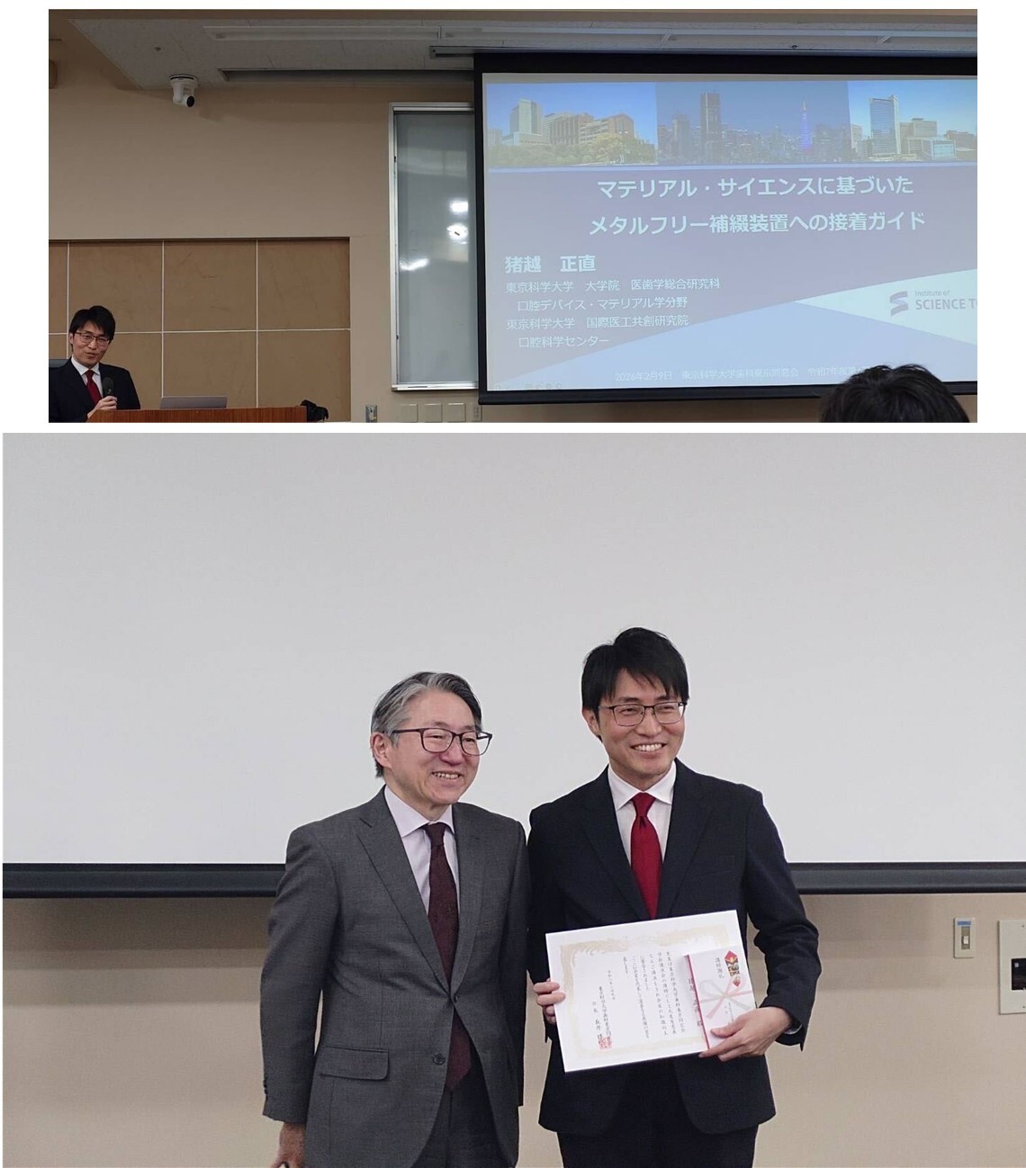 2025/11/08 Gave a special lecture at the Kanto Branch Seminar of the Japanese Society for Dental Materials and Devices (Masanao Inokoshi)! Also received the Research Encouragement Award (Reina Ban)!