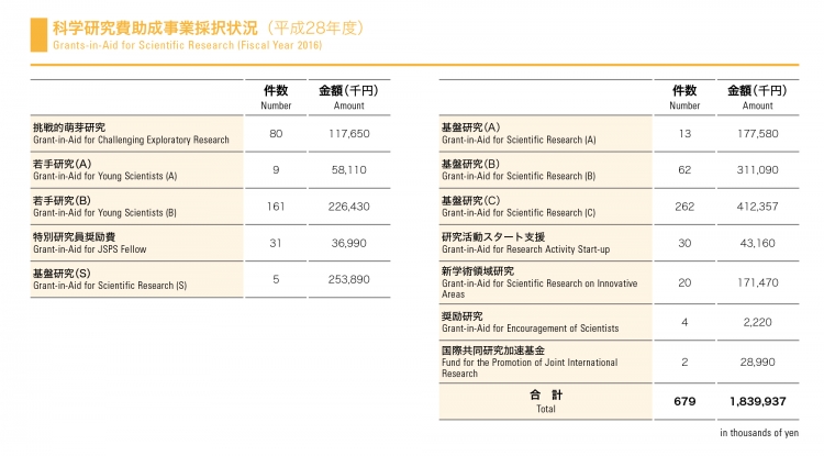 Grants-in-Aid for Scientific Research (Fiscal Year 2016)