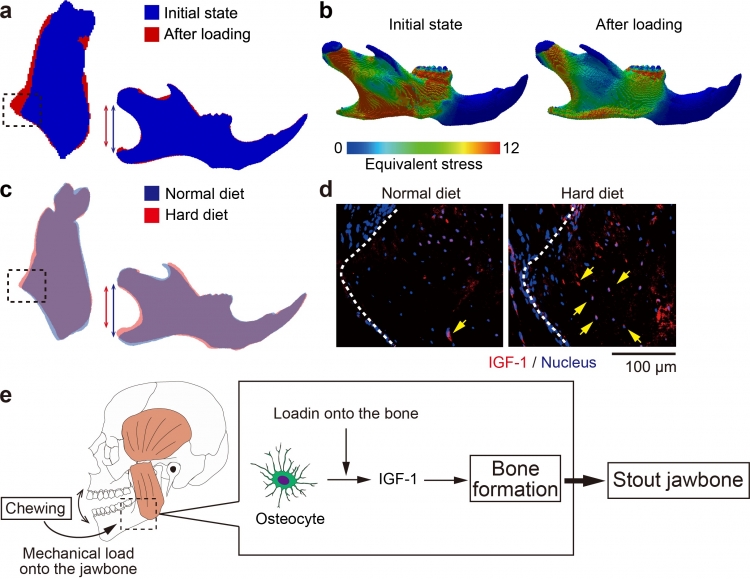 Additionally, they found that increasing the force applied to the jawbone stimulated osteocytes to produce more IGF-1, one of main growth factors that promotes bone formation. This alteration led to bone formation, resulting in morphological changes in the jawbone.