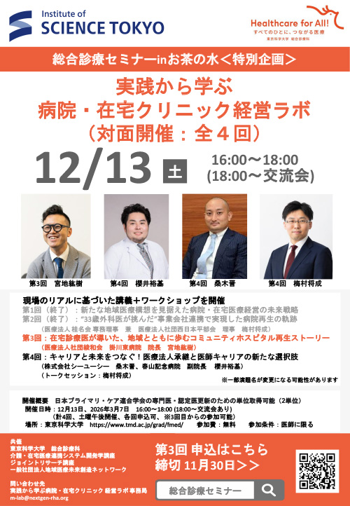 第3回 2025年12月13日(土) 「在宅診療医が導いた、地域とともに歩むコミュニティホスピタル再生ストーリー」 (医療法人社団 綾和会 掛川東病院 院長 宮地紘樹)
