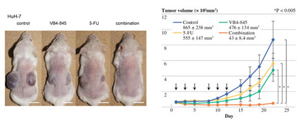 肝がんは典型的な血管新生を示す腫瘍であり、以前より我々は肝がん血管新生に対する標的分子を解析している (Tanaka et al. J Clin Invest 1999, Cancer Res 2001, Hepatology 2002, J Hepatol 2006, Cancer Sci 2009, Semin Oncol 2012)。 肝腫瘍モデルを用いた解析によって、VEGFR/ aurora血管新生阻害剤の抗腫瘍効果が、腫瘍内低酸素領域の低下と有意に相関することを証明した( Nakao, Tanaka et al. Cancer Sci 2015)。現在、血管新生阻害剤の臨床バイオマーカーを探索し、その制御メカニズム解明を進めている。