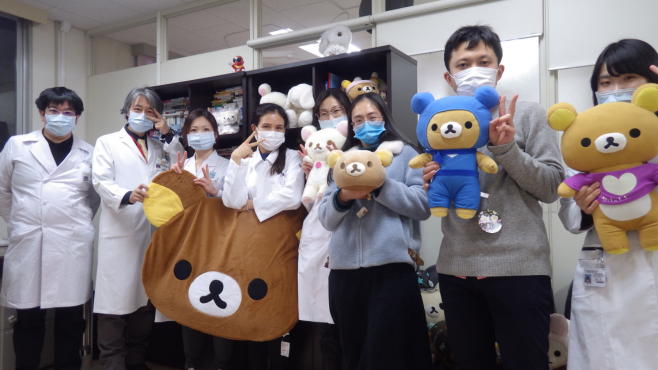 林くんも、ちんさん(左から2番目)も、日本のキャラクター(ちぃかわ)好きです。中国で人気キャラクターのようです。