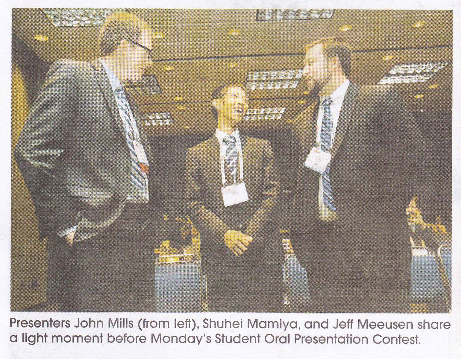 他の受賞学生と談笑する間宮君(学会新聞に掲載された写真)