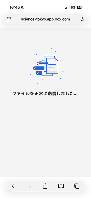 ・ファイルの大きさ、通信環境、BOXの不具合等によってアップロードに時間がかかる場合がございます。アップロード時の画面を以下に貼りますので、ご注意ください。
