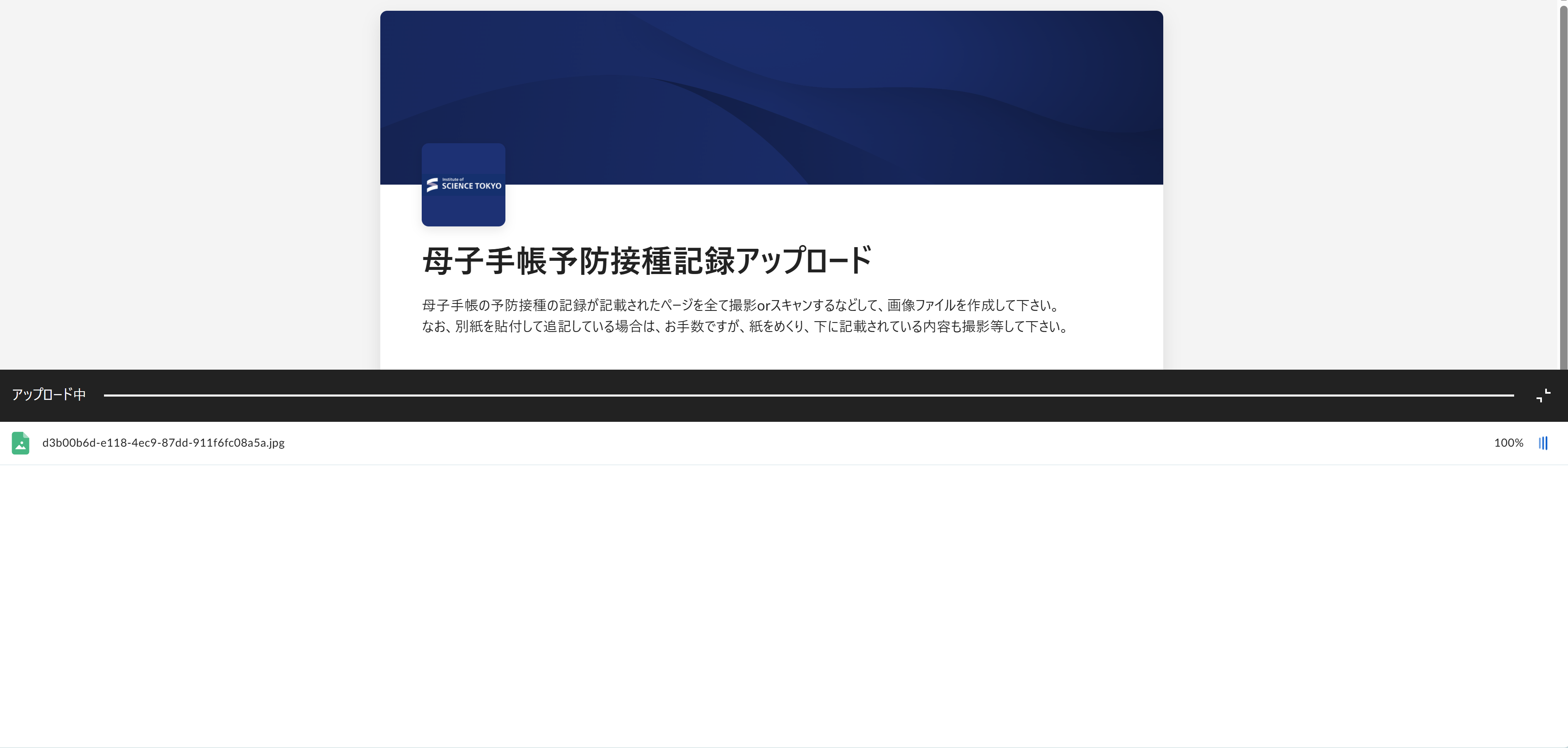 ・母子手帳の予防接種の記録が記載されたページを全て撮影orスキャンするなどして、画像ファイルを作成して下さい。