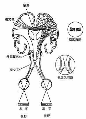 図38−4 両断脳(Split brain) を作るための切断部位(Downer,1963)。