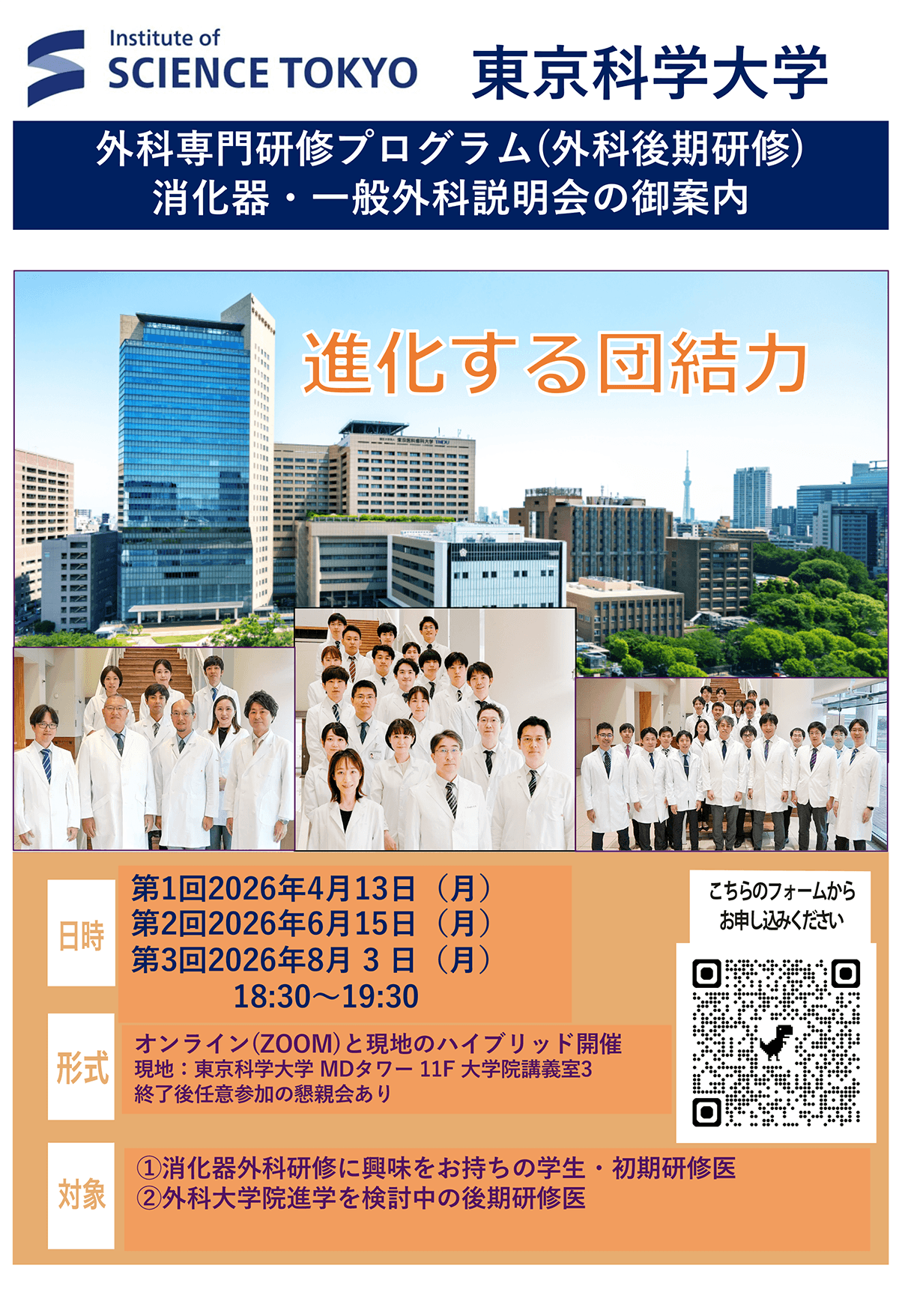 東京科学大学の外科プログラムの特徴を知ることができる機会ですぜひご活用ください。