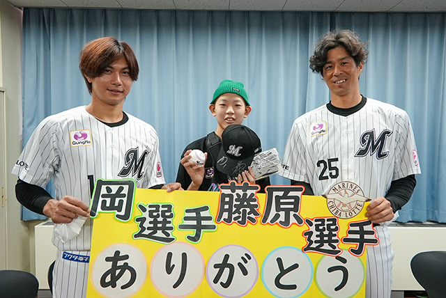 シーズン前でお忙しい中、来てくれてありがとうございます。治療を乗り越えて回復し、また野球を再開したいという目標が、よりはっきりしました。藤原選手や岡選手が活躍したシーンは、どれもはっきり覚えています。特に、岡選手の『ヒロミナイト』は今でも印象に残っていて、今年も楽しみにしています!