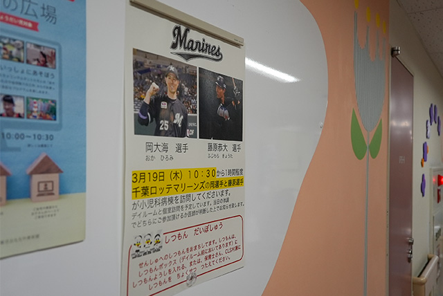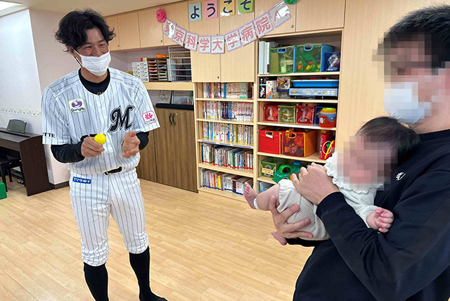 このたびは、千葉ロッテマリーンズの皆さまにご協力いただき、このような機会を実現できましたことを大変うれしく思っております。本院に入院されているお子様にとって、日々の治療は決して容易なものではありませんが、プロ野球選手との交流が、前向きな気持ちや大きな励みにつながることを期待しております。