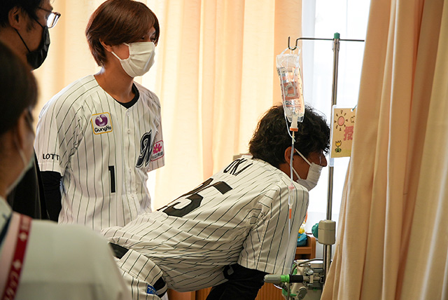 主治医の先生との診察中に、『息子は野球部で、千葉ロッテマリーンズが大好きなんです』という話をしたところ、病院の皆さまがご尽力くださり、息子の夢がかないました。シーズン前の大切でお忙しい時期ですし、直前まで難しいのではないかと思っていたので、本当に実現したことが信じられません。治療の痛みやつらい時間を乗り越えてきた息子にとって、大きな励みになりました。本当にありがとうございます。