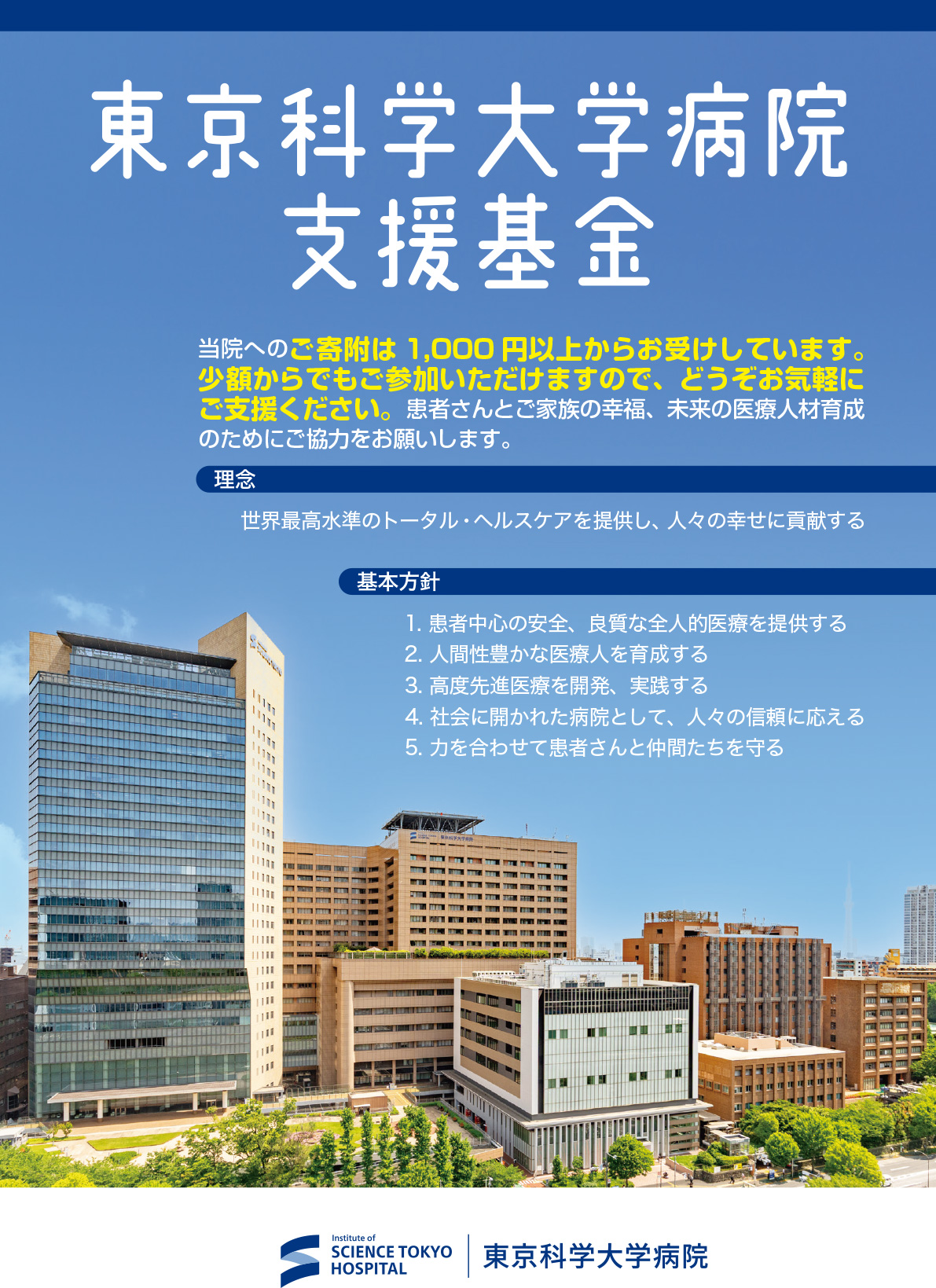 東京科学大学病院支援基金は、先進的医療の開発推進や診療体制の充実、病院内外の施設や環境の整備を行い、患者サービスを向上させるために使用します。