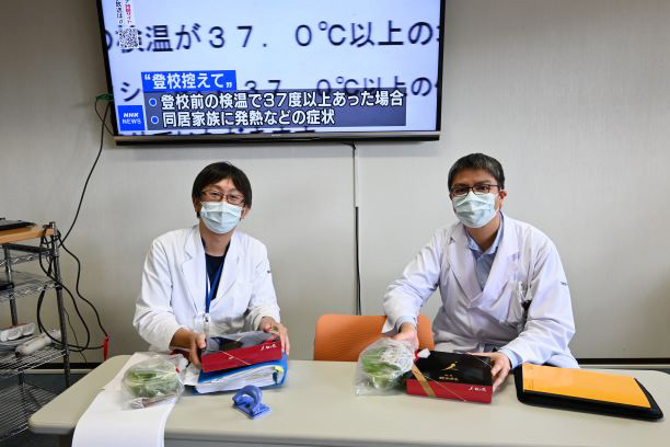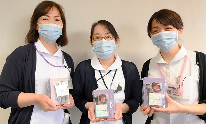 撮影に協力してくれた看護師の皆さんからは、 寄付していただいた製品を興味深そうにチェックしつつ、