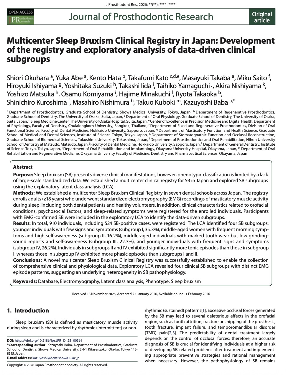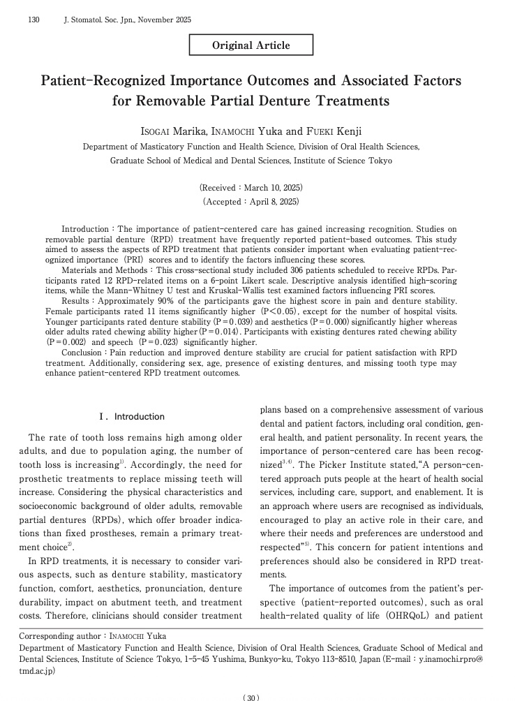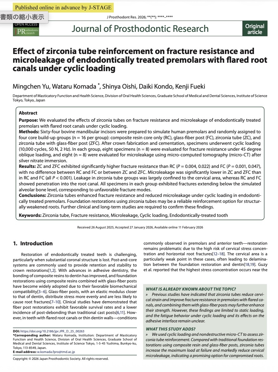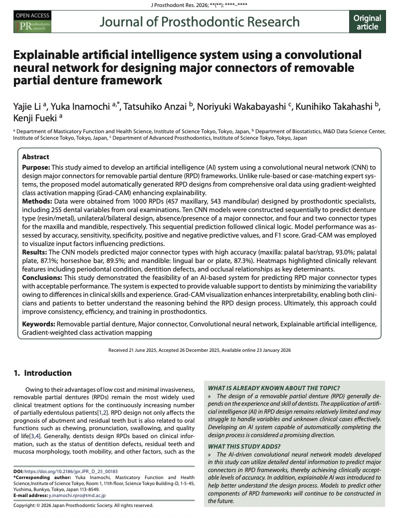 Journal of Prosthodontic Research 2026 (IF:3.4)
