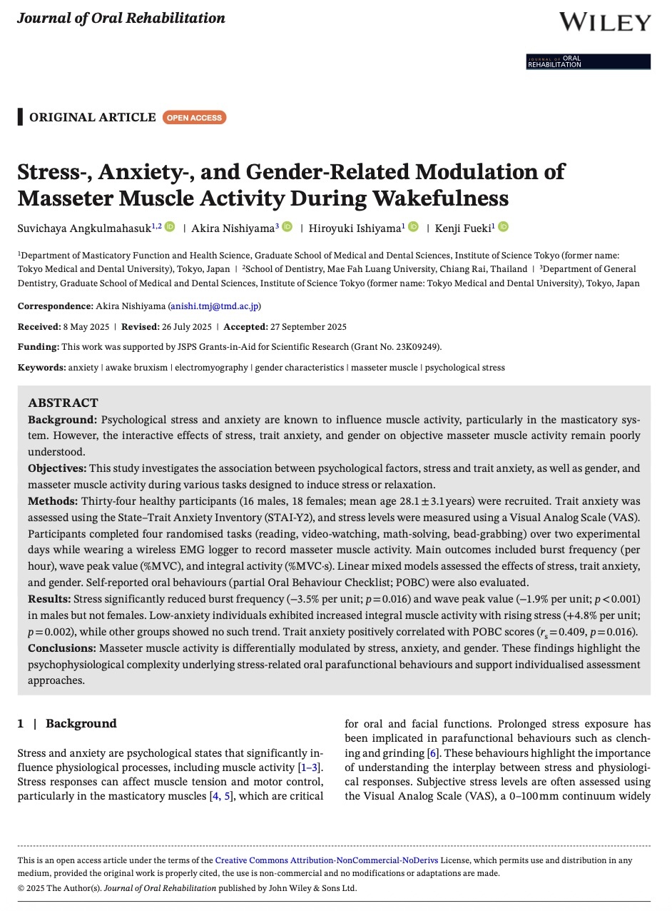 Journal of Oral Rehabilitation 2025 (IF:3.1)