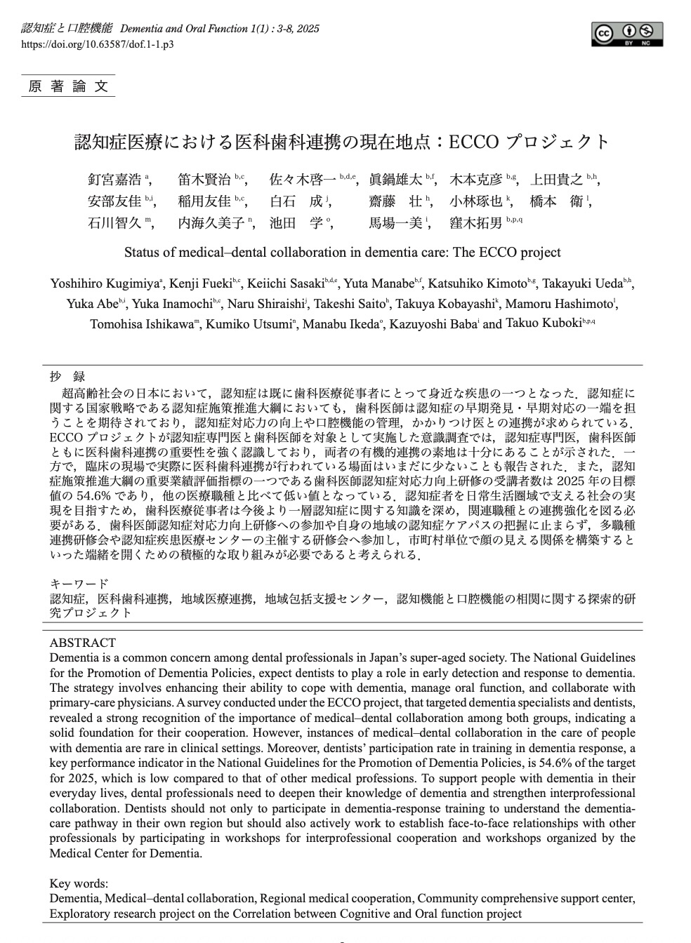 認知症医療における医科歯科連携の現在地点:ECCOプロジェクト.