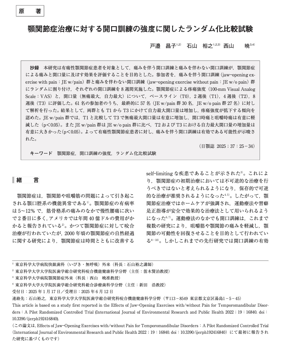 日本顎関節学会雑誌. 2025.08; 37 (2): 25-34.