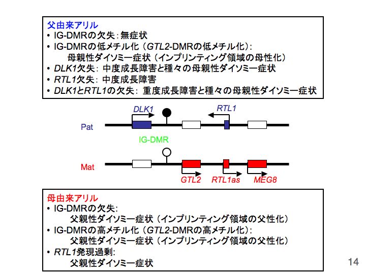 ヒト14番染色体のインプリンティング制御センターの異常によって引き起こされる重篤な疾患とその原因遺伝子の同定