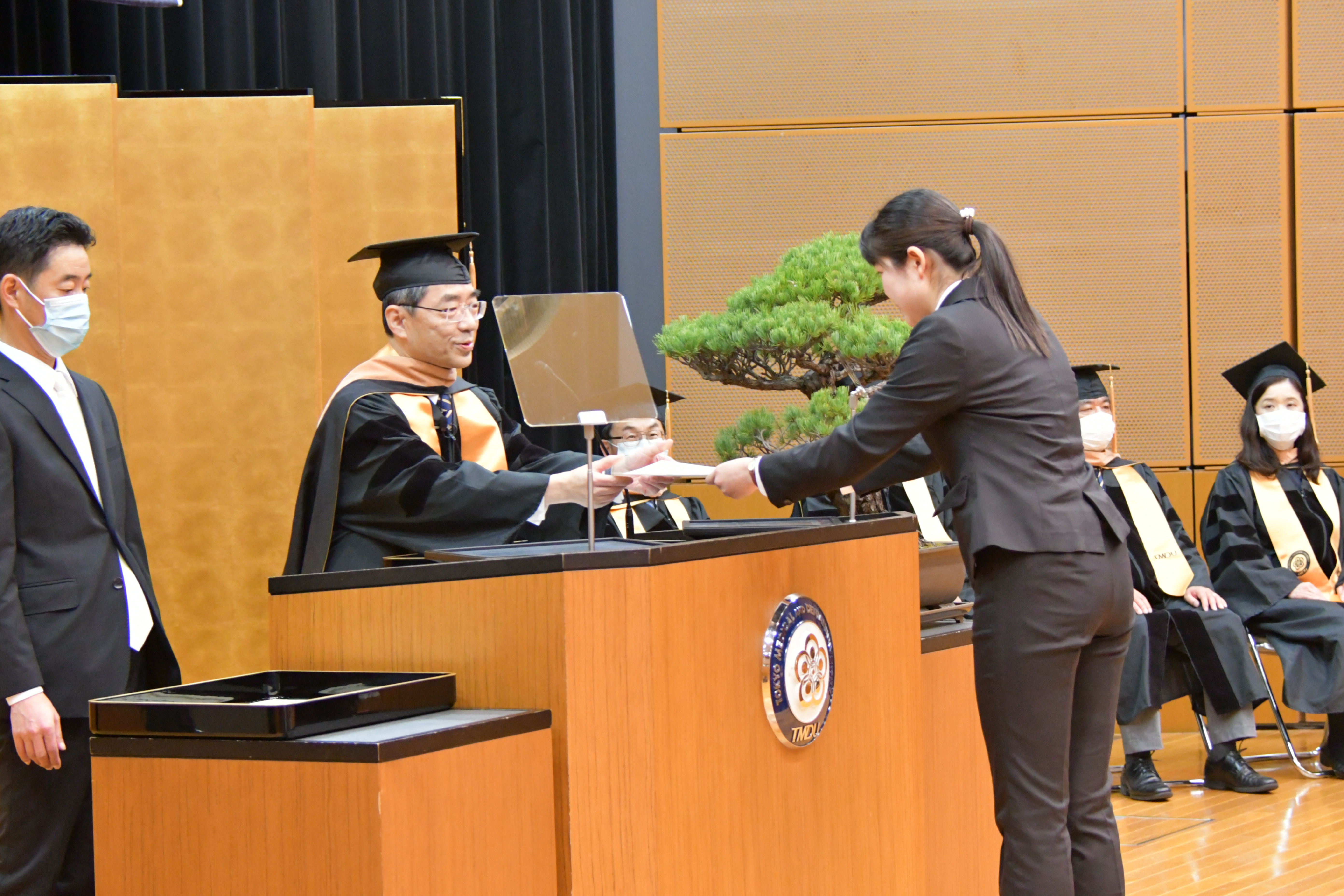 修士125名、博士189名、合計314名の修了者に各専攻分野における学位記が授与され、田中学長から式辞としてメッセージが贈られました。