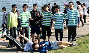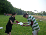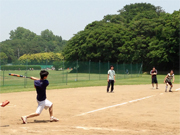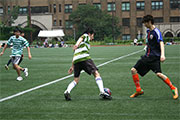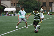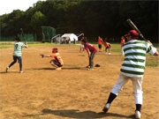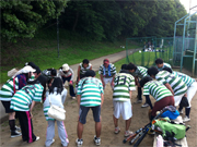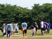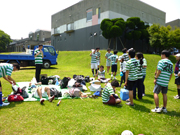 サッカーも1回戦、2回戦と勝ち上がりました! 準決勝はソフトとかぶり、急遽、女子チームを結成しましたが、暑さで断念。でも、4位! |