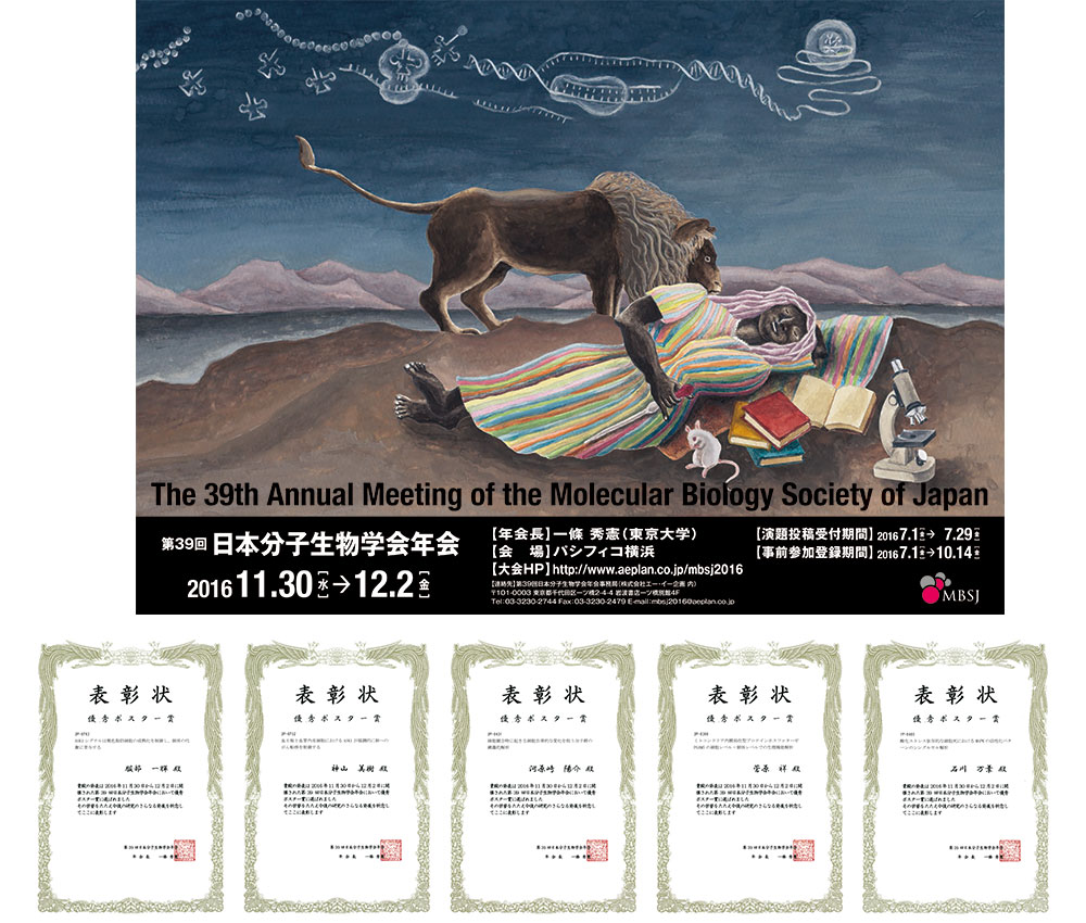 服部一輝,神山美樹,河原崎陽介,菅原祥,石川万葉:第39回日本分子生物学会年会「優秀ポスター賞」受賞