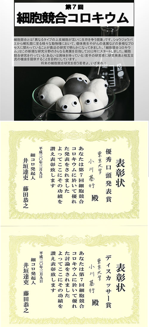 小川基行:第7回細胞競合コロキウム「優秀口頭発表賞,ディスカッサー賞」受賞