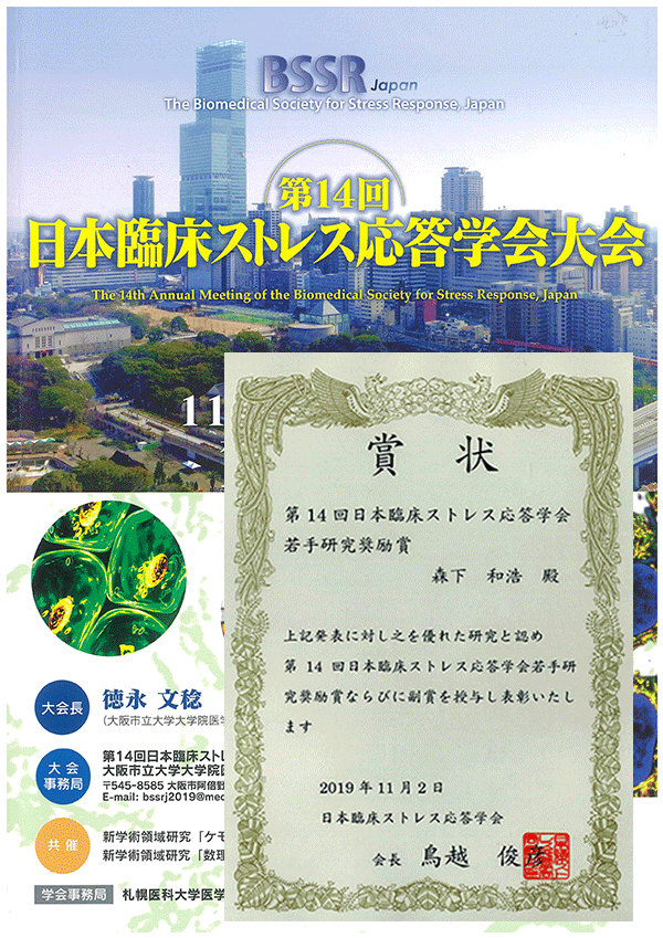 森下和浩:第14回臨床ストレス応答学会大会「若手研究奨励賞」受賞