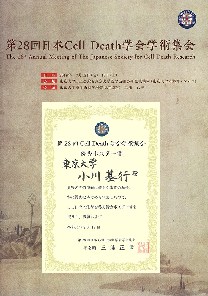小川基行:第28回日本Cell Death学会学術集会「優秀ポスター賞」受賞