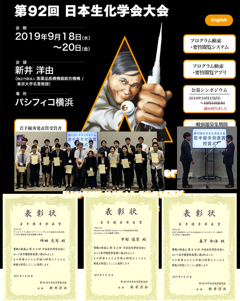 坪田充司, 中村俊崇, 森下和浩:第92回日本生化学会大会「若手優秀発表賞」受賞