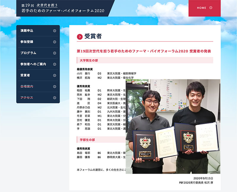小川基行,森下和浩:第19回若手のためのファーマバイオフォーラム2020「最優秀発表賞,優秀発表賞」受賞