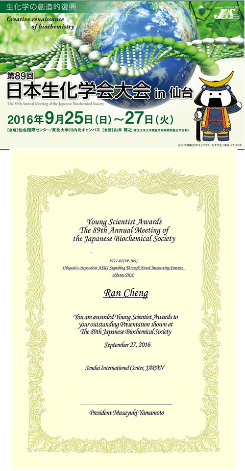 Ran Cheng:第89回日本生化学会大会「Young Scientist Awards」受賞