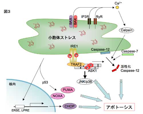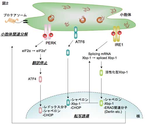 近年、小胞体ストレスと様々な疾患(糖尿病・虚血性疾患・神経変性疾患・癌疾患など)の関係が明らかになっています。そのなかで私たちは、特に神経変性疾患と小胞体ストレスの関係について焦点をあて、研究を進めています。
