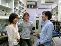 今年度、藤野は新人の山内とコンビを結成し、この領域の構造変化についてさらなる詳細の解析に着手しました。この詳細が明らかになれば、将来的にASK1の活性調節が人為的にできるようになるかもしれません。これはASK1の過剰な活性化によって引き起こされる強い炎症や細胞死を人為的に調節できることを意味し、ASK1が創薬のターゲットとなる可能性を含んでいます(ASK1の疾患への関わりはJ. Biochem. Mol. Biol., (review article), 40, 1-6 (2007).を参照)。